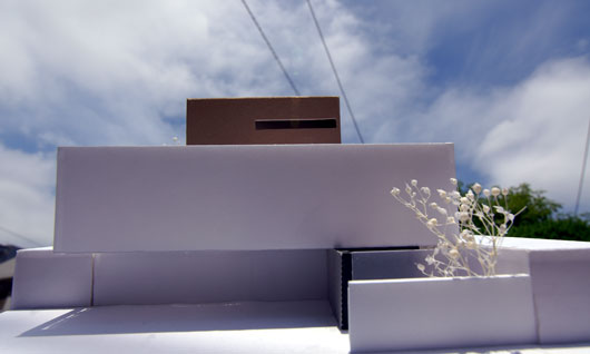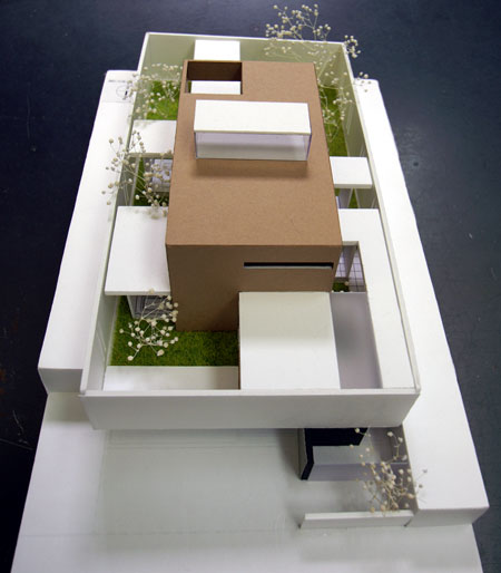 敷地周囲を3m近いコンクリート構造壁で囲い、そこからプレート状に
