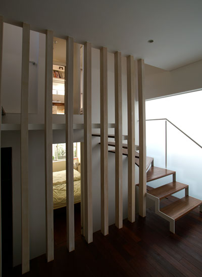 グランドレベルより1mほど寝室の床レベルが下がっているため