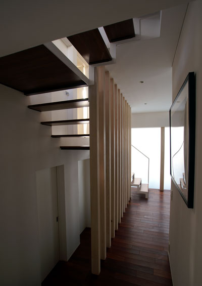 さらに半階上がって、デッキスペースを取り巻く壁で囲まれた