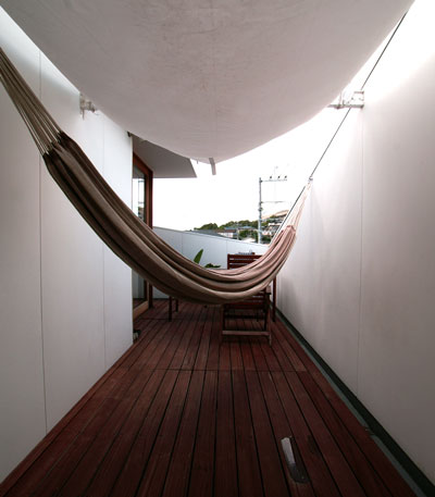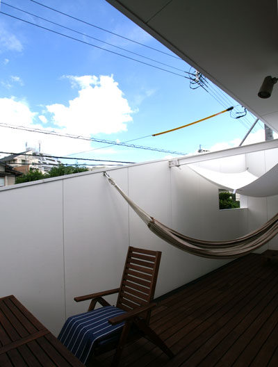 デッキスペースには、ご主人がこだわらていたハンモックが風に揺られ