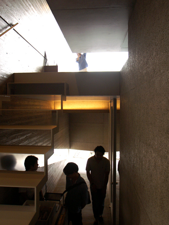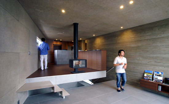 挿入しただけの極めて単純な構成ながら内部空間は床レベルの変化と