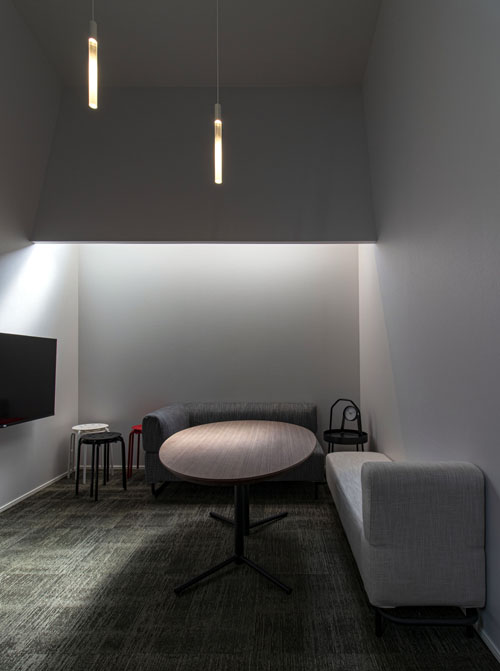 建物はロフトのある宿泊室が2層重なり、道路側のフリースペースとスキップフロアに