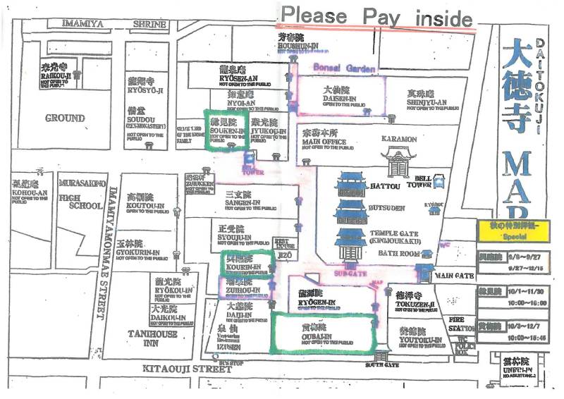 大徳寺内の拝観はとても絞られており拝観できるマップを頂きました。