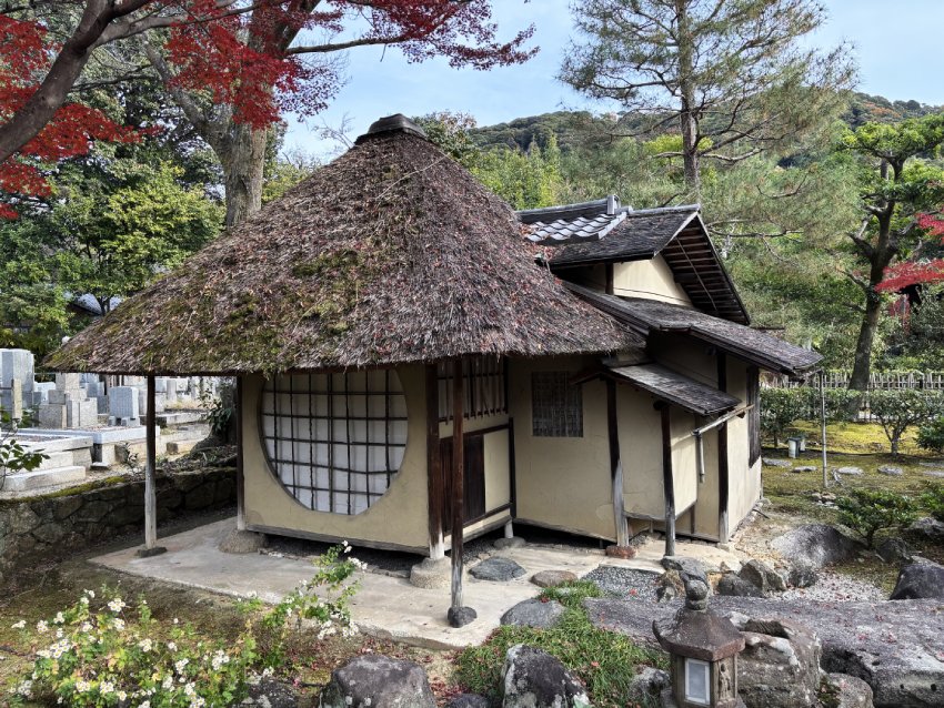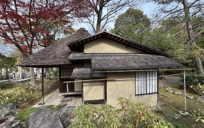 高台寺は豊臣秀吉の妻おねねの方高台院の菩提寺で広い園内にはいくつかの茶室が点在しており情報を持たないまま3つほど見ましたが上の写真はその中の一つです。