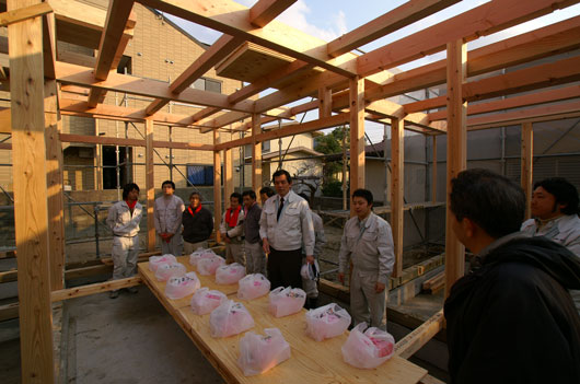 こちらこそありがとうございました。 この1年半、私も時々お打ち合わせに参加させていただいて・・I 様の家づくりへの思いやこだわりをひしと感じていてただけに・・本日の上棟式、感激もひとしおでした。竣工、楽しみにしております・・よろしくお願いいたします。