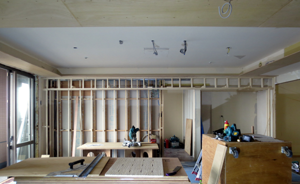 内部の造作下地は意外にも軽量鉄骨下地ではなく木下地で
